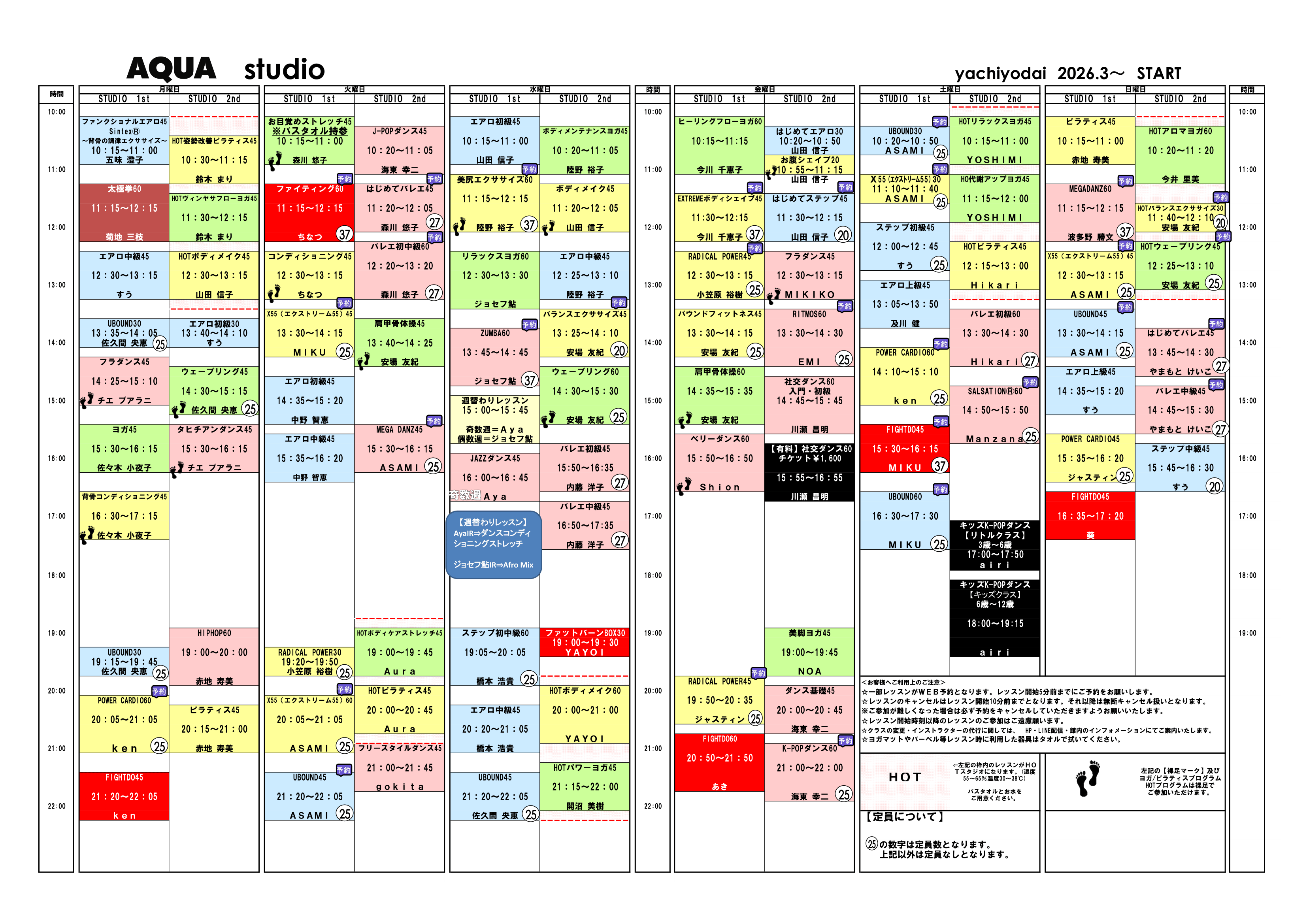 2026年3月~スタジオプログラムスケジュール