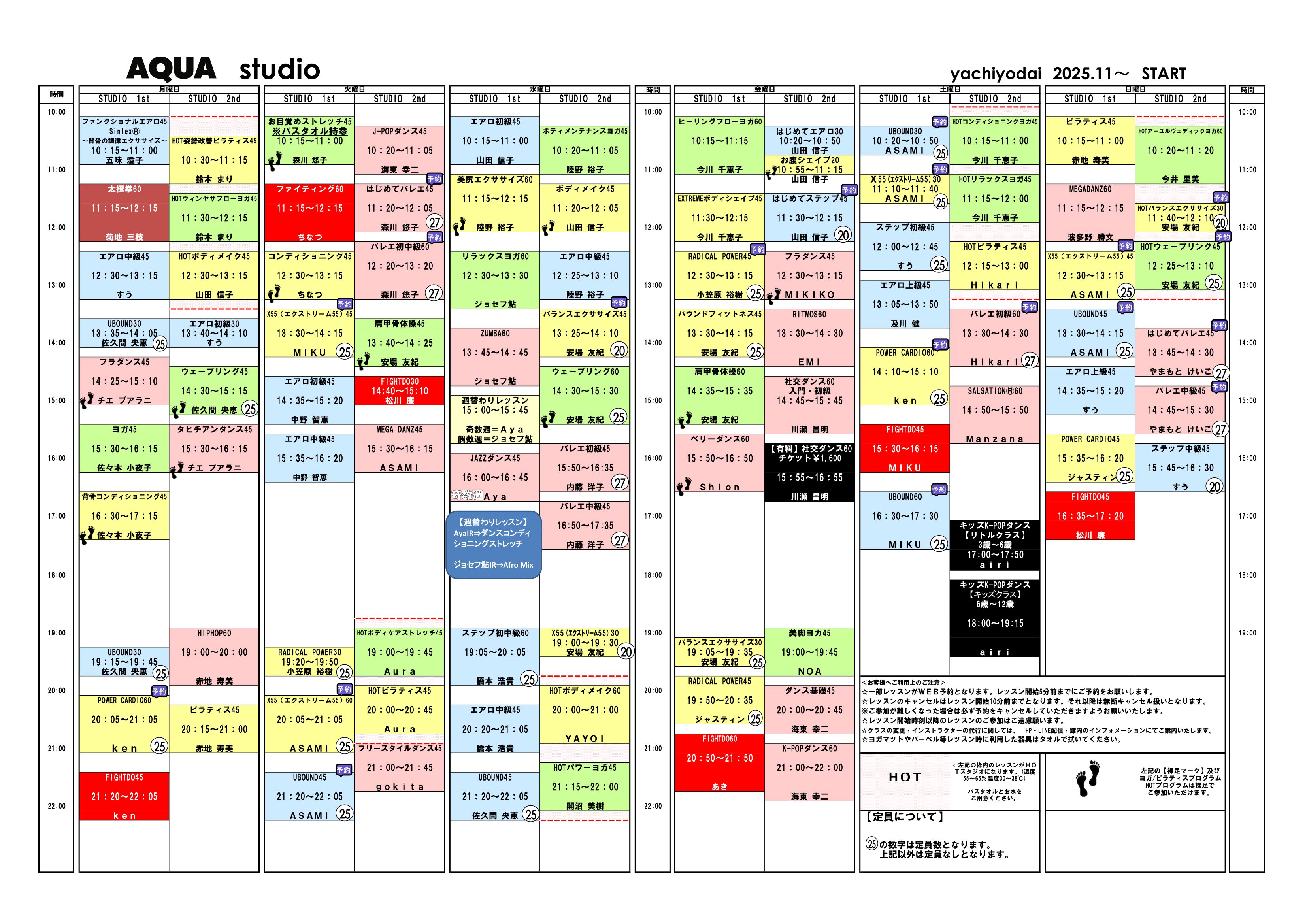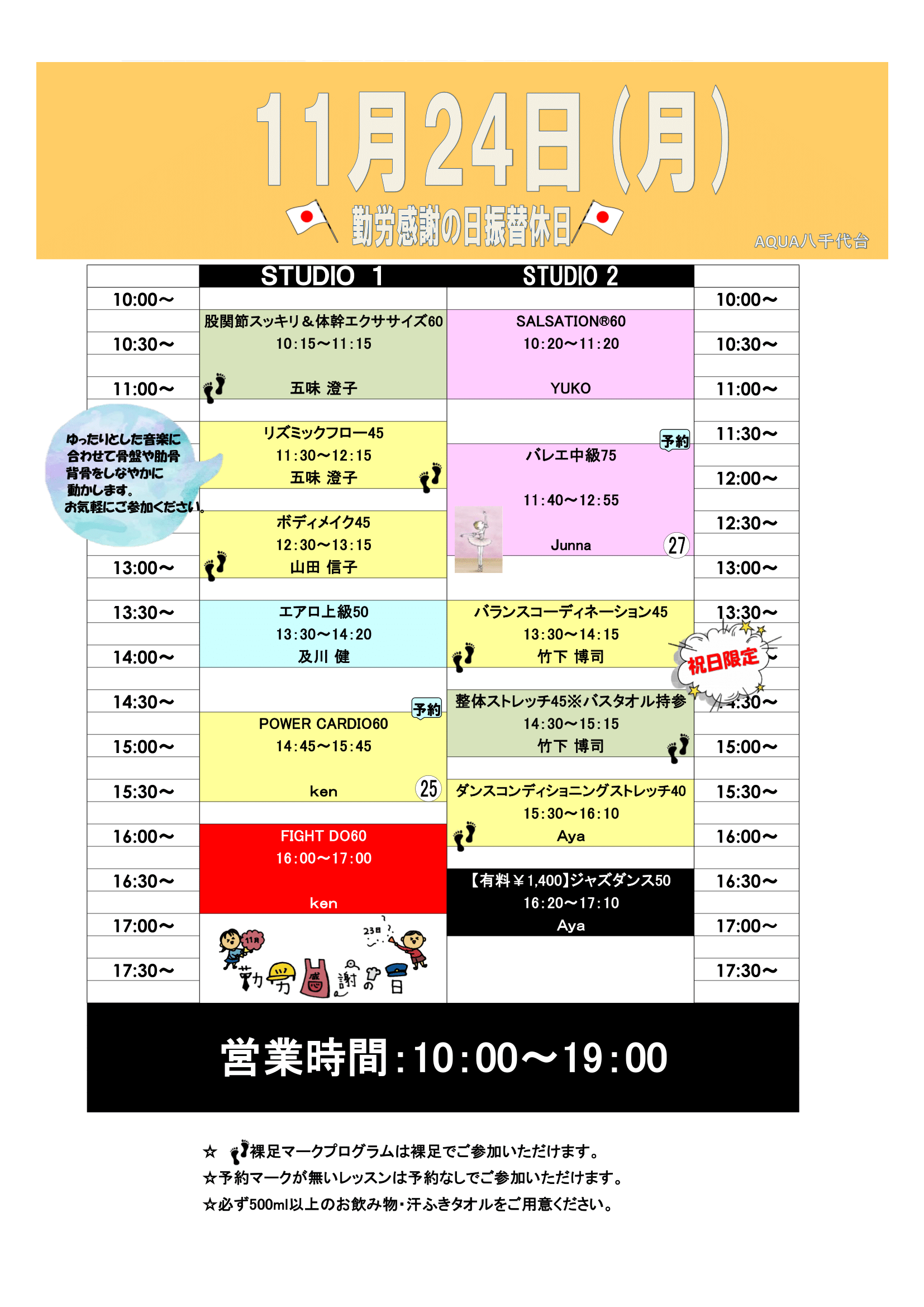 2025年11月~スタジオプログラムスケジュールのお知らせ